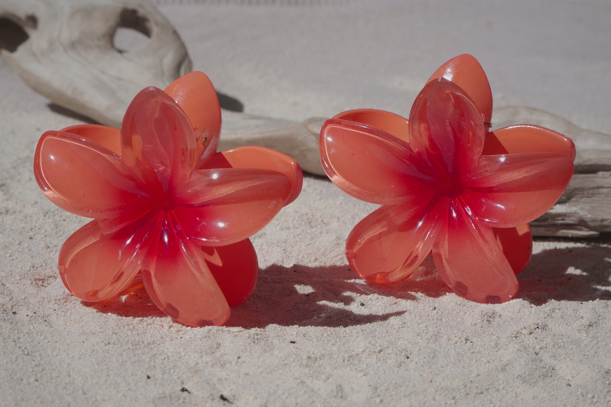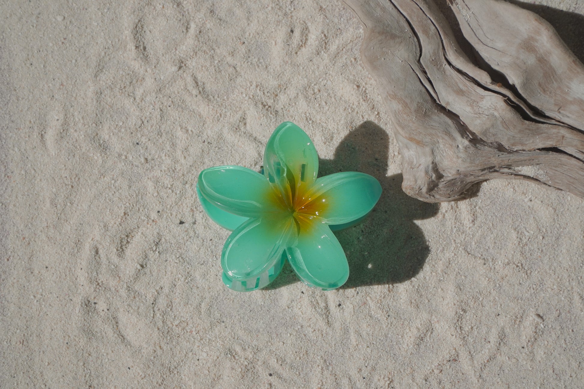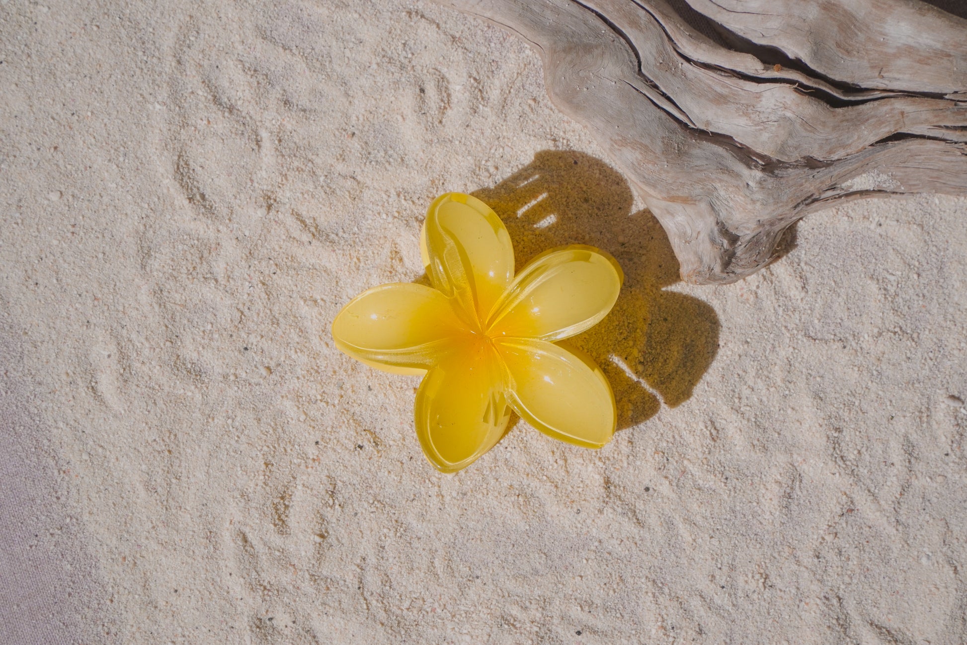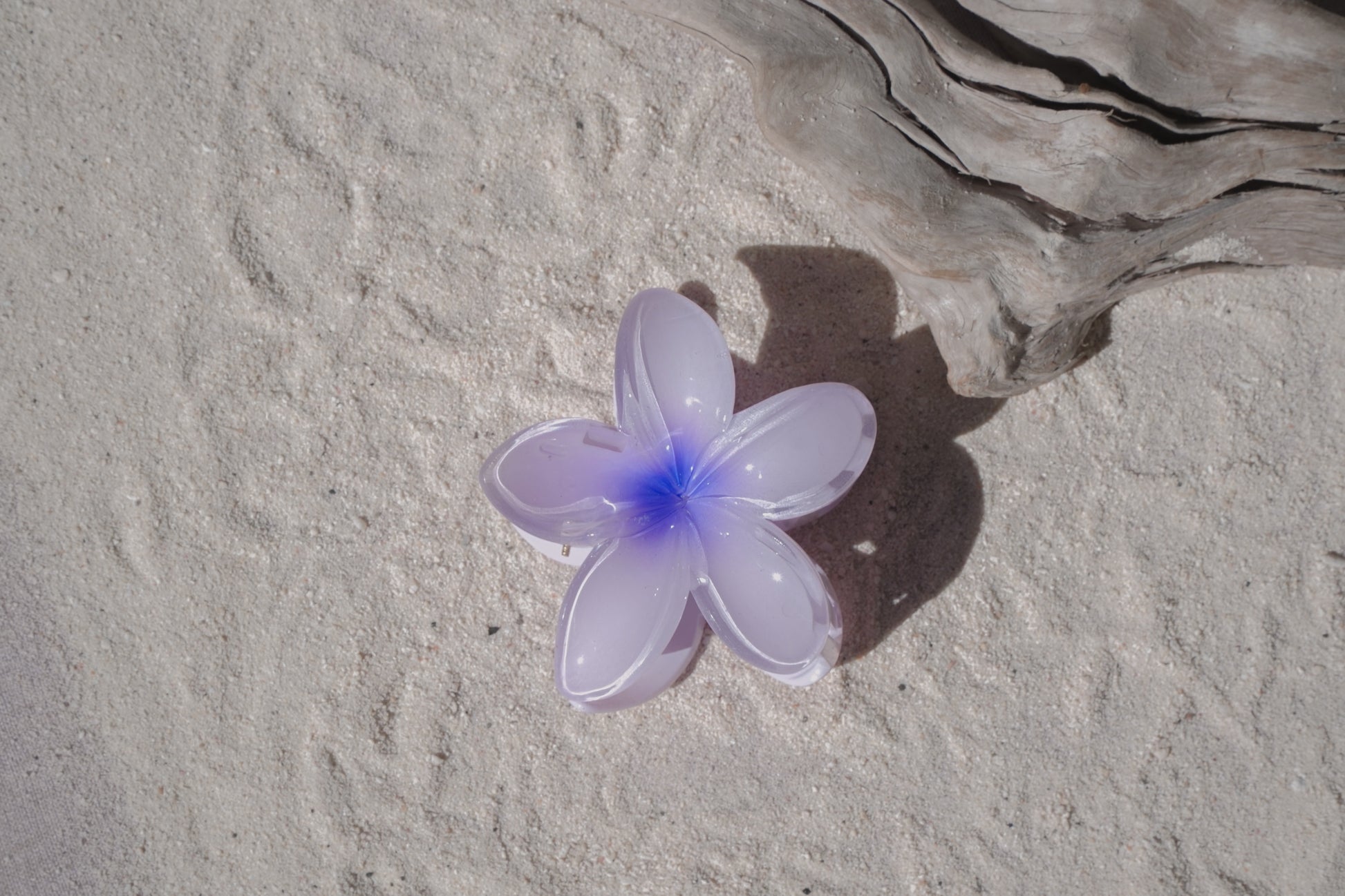 Pince à cheveux en forme de fleur de tipanier, au design épuré et délicat.